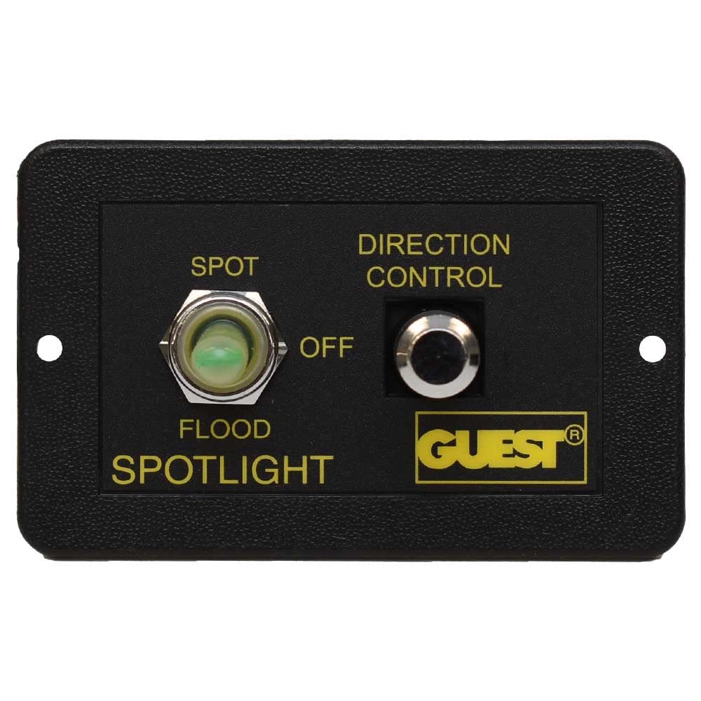 The Guest U-3606 Control Panel is designed for marine applications, providing intuitive control over spotlight and floodlight functions, including direction. This panel is a robust solution for managing your vessel's lighting needs.