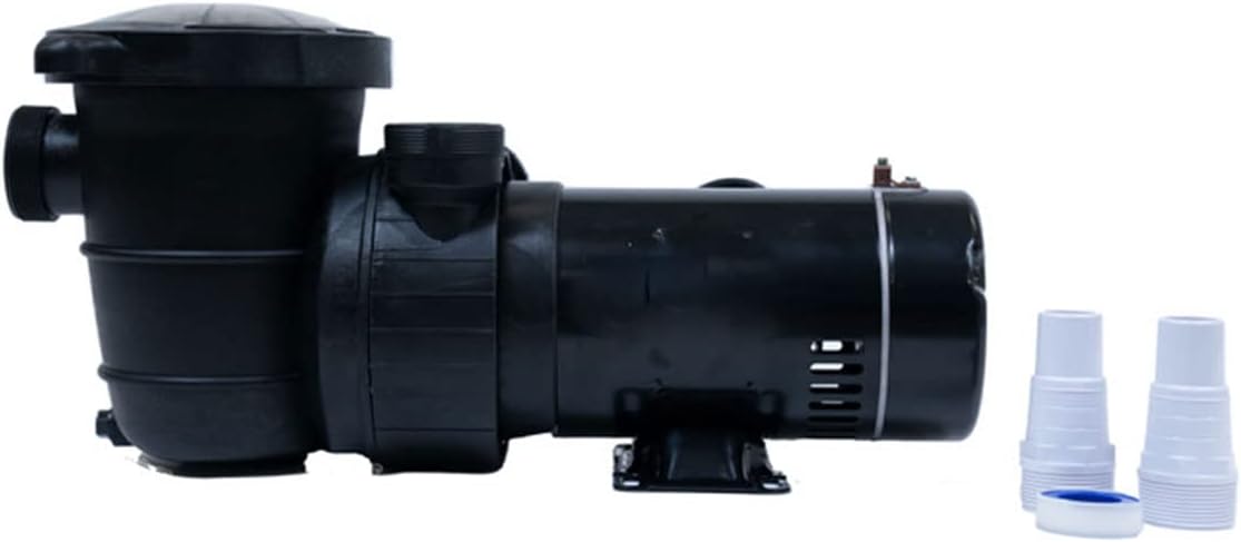 The pump features standard threaded ports for connection to your pool's plumbing system. Use appropriate PVC fittings and pipe dope or Teflon tape to ensure watertight seals. The intake (suction) port is typically located at the front of the pump, and the discharge (return) port is on top.